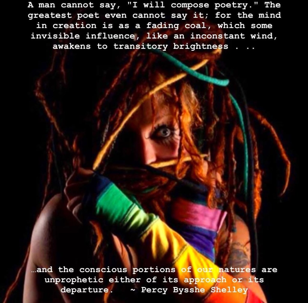 “A man cannot say, "I will compose poetry." The greatest poet even cannot say it; for the mind in creation is as a fading coal, which some invisible influence, like an inconstant wind, awakens to transitory brightness . .. and the conscious portions of our natures are unprophetic either of its approach or its departure.”