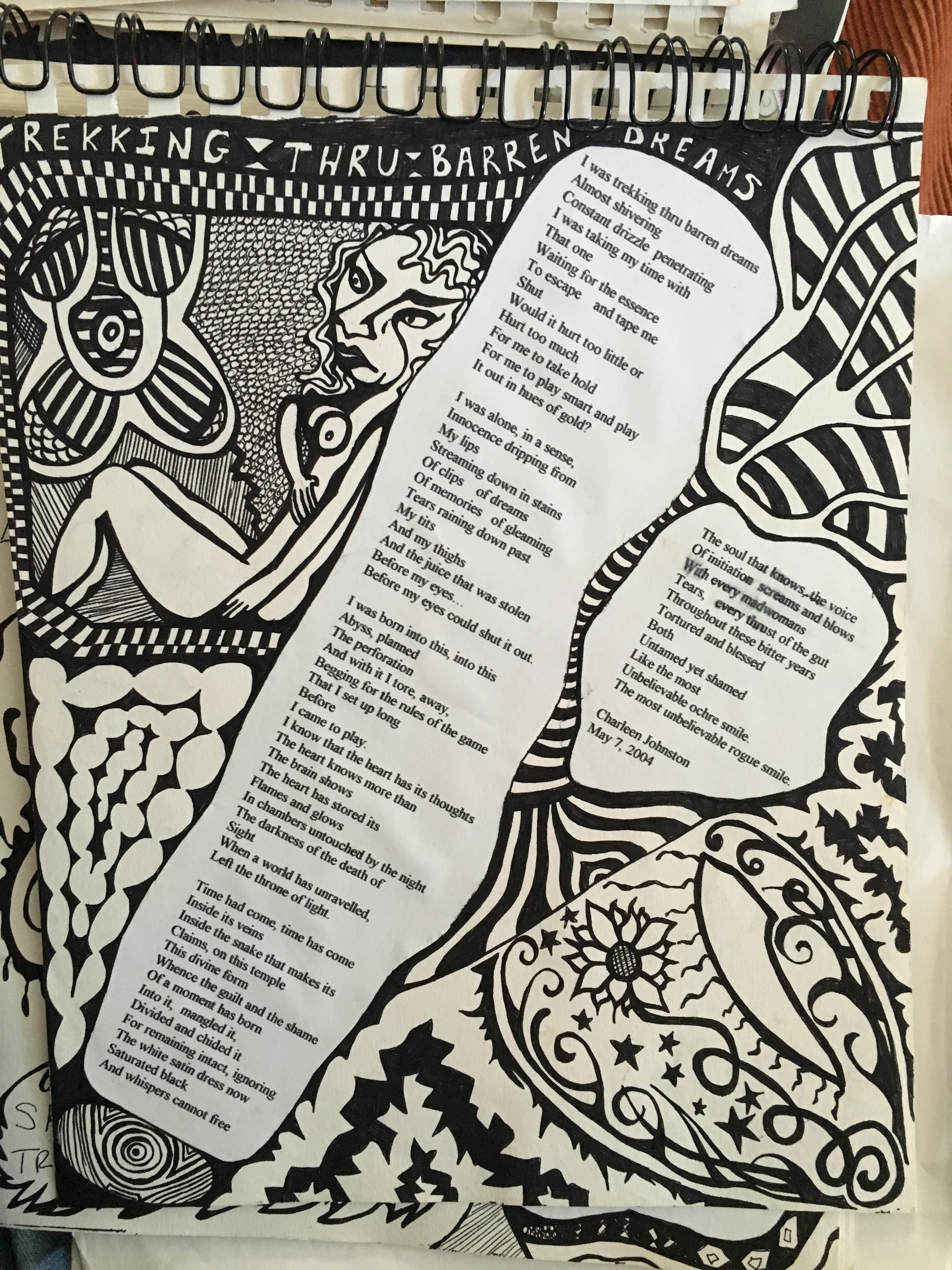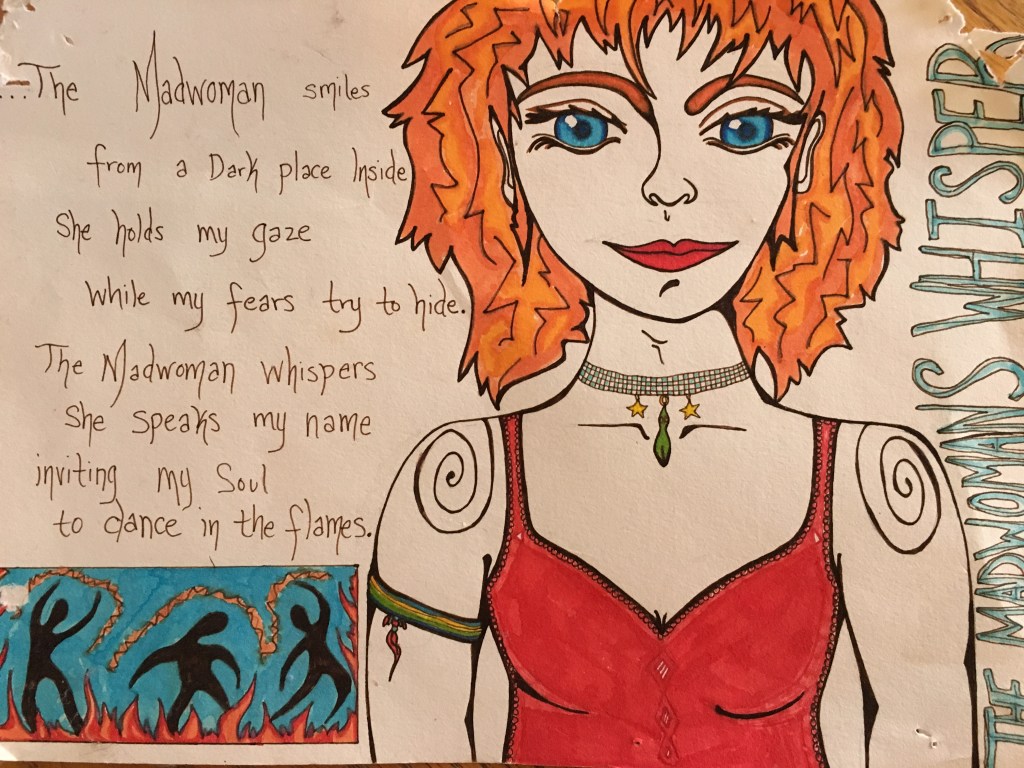 I am a creature who compulsively creates, and impulsively expresses. I also Inspress, delighting in the eternal internal wor(l)ds that become the vehicle of my spirit through TimeSpace. I get overwhelmed when I try to compile the body of work from my 40 years thus far in the Wilderness of this dream. But I have determined that I cannot proceed with new endeavors til I have honored those things which have sprung from my Being. I am a chosen Fool, the Jester inGesting synaptic sparks and transcribing the flame into Stories and rhymes that invite the mind to play. The trickster that swims between the seams, neither this nor that, but All Things. I write in a stream of consciousness style, almost never editing, and flowing with what wants to be spoken through me. I love to play with language, and through my tricks, to pull others into Seeing through my eyes the majesty and magic of the mirror of mind, and to come with me on an adventure of Self…..Words are WorLds and We are made of Stories and Songs and we can deCode this playground in so many ways! I will structure this page with sub-pages that are sorted as Collections from various time periods. All writing is copyrighted by me, and if you feel called to share my work, please give credit and link back to my site. Blissings!!!!!!